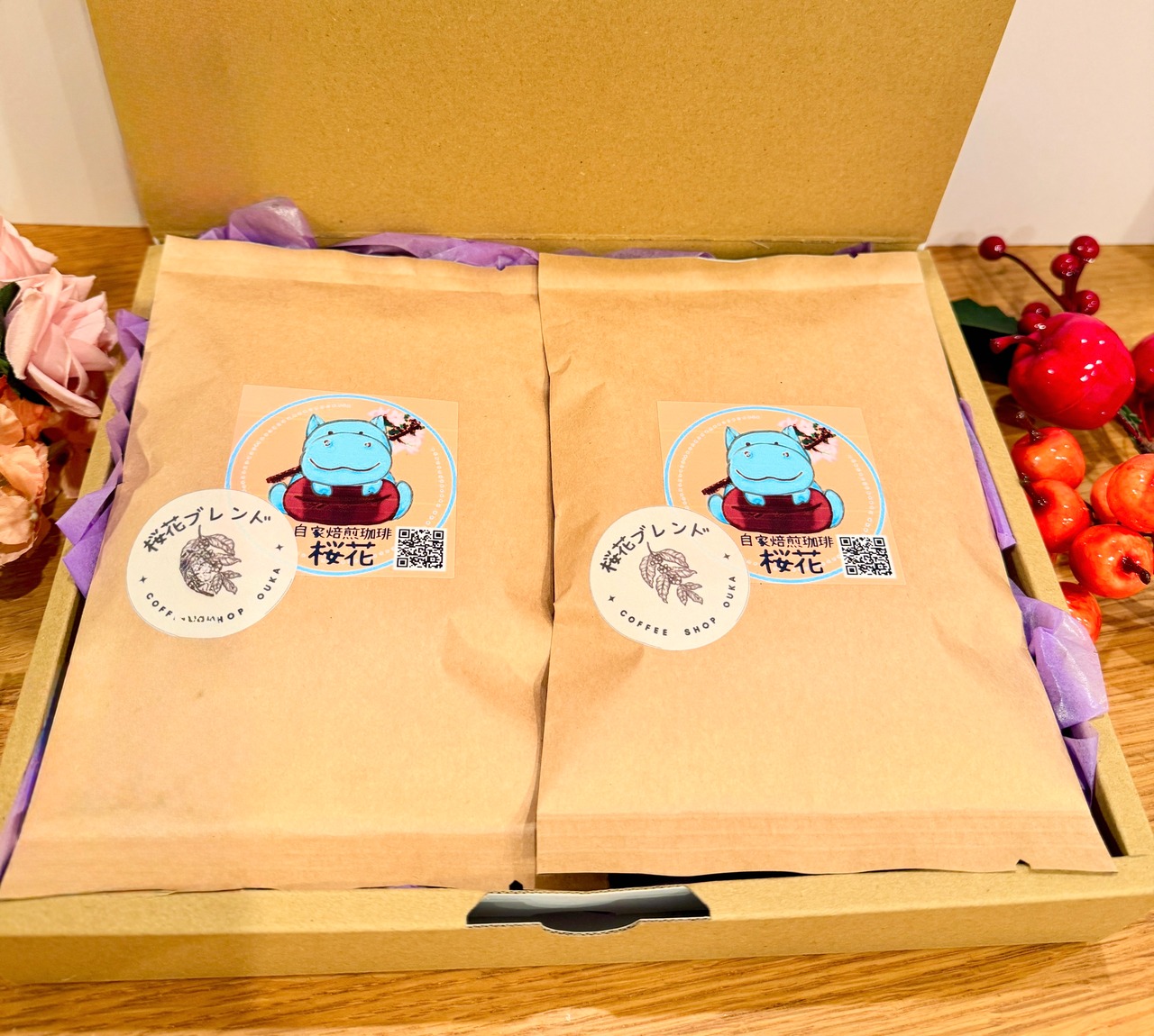 当店一番人気の桜花ブレンド100グラム2packをギフトボックスに入れてお届け致します